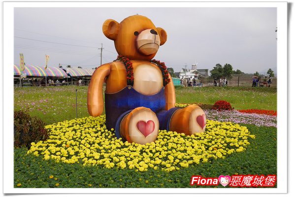 座落在一片花圃當中的泰迪熊真是可愛,Fiona好喜歡它呀!!
