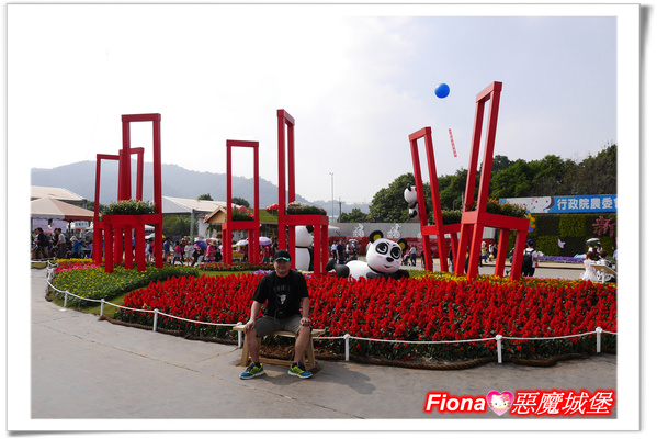 熊貓與高椅的組合感覺好特別,看著可愛的熊貓在這片花圃裡爬上爬下,真的是好古椎,這區也是Fiona最愛的啦!!
