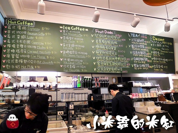 高掛在後方的黑板上,寫滿了許多咖啡、飲料的售價