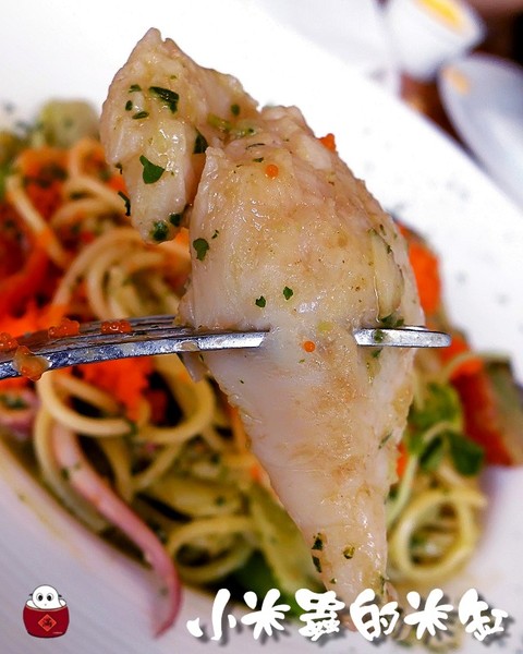 香噴噴的義大利麵上,放上了許多鮮美的海鮮遇大量的明太子~
