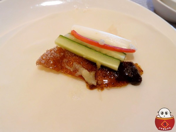入口時,鴨皮那酥脆的口感在嘴裡批哩啪拉地作響~天阿~真的有夠酥的