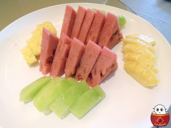 水果盤有西瓜、鳳梨跟香瓜