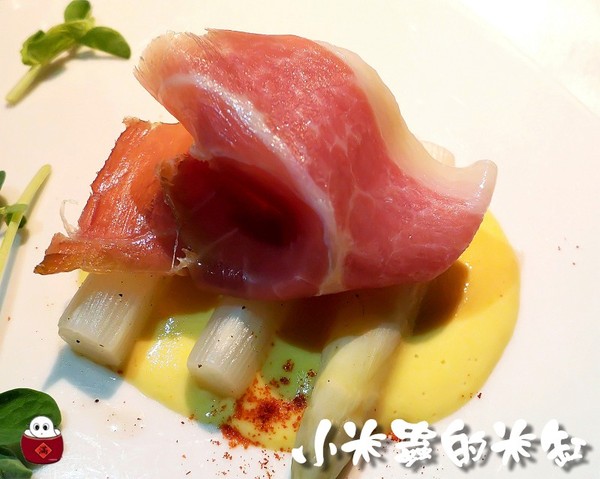 「白蘆筍襯風乾火腿」火腿味道鹹了一點,但蘆筍嫩嫩脆脆的好好吃喔~~