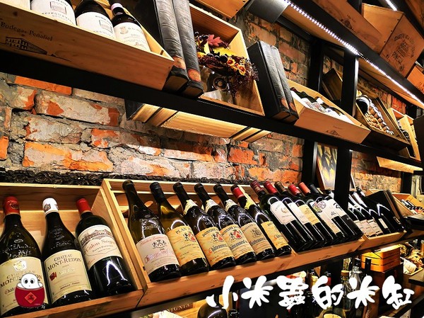 大廳內一隅裝置著酒窖風格的酒櫃