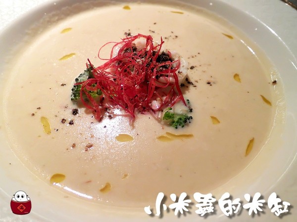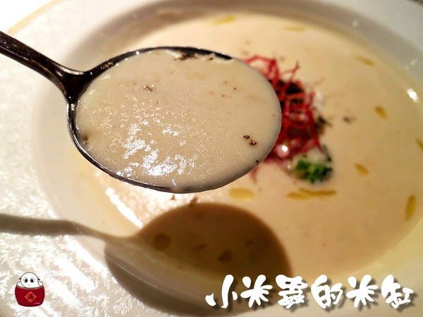 濃湯奶香十足卻不膩口,主廚還在湯裡加了幾滴松露油以增香味~