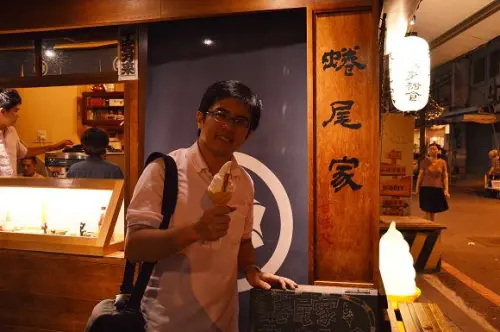 充滿日式木造房的洗手間建築.搭配上這棵茂盛的樹木.頗有置身在日本的錯覺