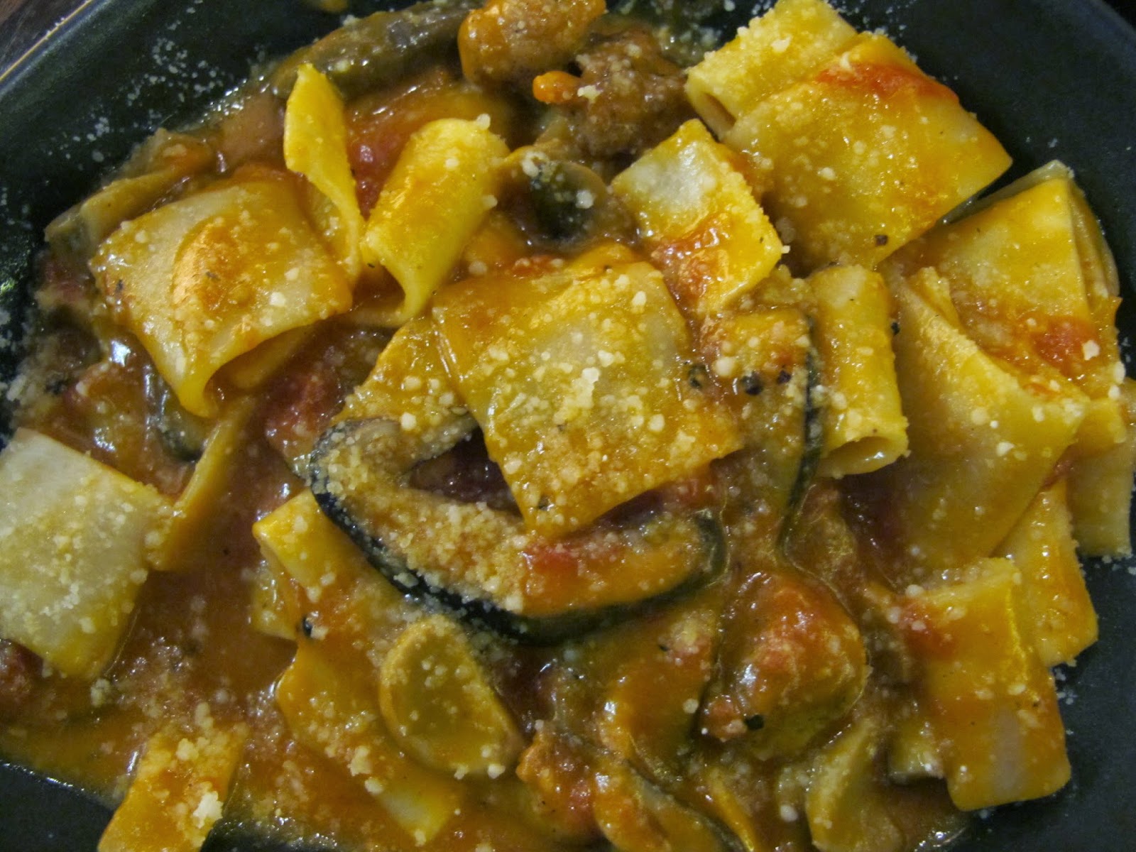 | 蘑菇香腸蕃茄粗管麵 |