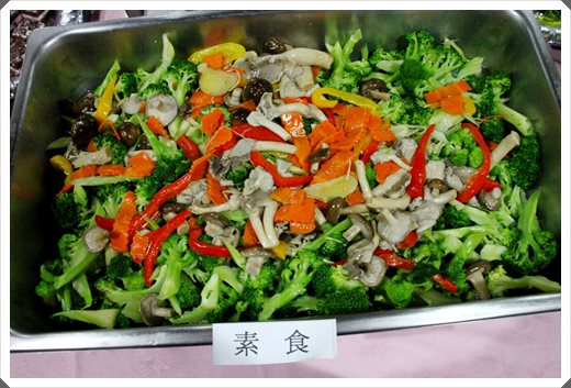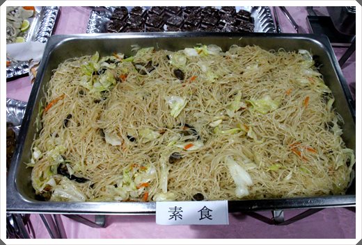 當然素食的餐點也要準備一些才周全呀,不過還記得我第二張放的那個炒米粉嗎?就是這一盤,我一開始比較不好意思就先夾一小口吃看看,沒想到還真好吃耶!米粉很綿密,而且還有米香,表哥之前就有跟我說米粉很招牌,叫我一定要吃看看,雖然是素食的,但是相當好吃!再回去要夾已經空了…,還好這個也是有兩盤,所以後來又夾了一大盤來吃,呵呵呵!