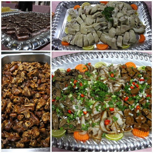 其它還有很多豐富的餐點,沒有全部都拍下來(顧著吃)有點可惜,不過像下面這個滷豬腳跟滷味拼盤都滷得很好吃,很入味,我覺得台中他們家外燴自助餐的餐點味道都抓得很剛好,像豬腳滷得很透,吃起來不會覺得油膩,雞肉也是不會太鹹,所以每道菜都可以一直吃一直吃都不會膩,害我吃了好幾盤耶!