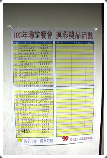 餐會結束的時候還有摸彩活動喔!看這滿桌的獎品都是廠商贊助的,連歡樂派也有贊助獎品喔!真的揪感心的。