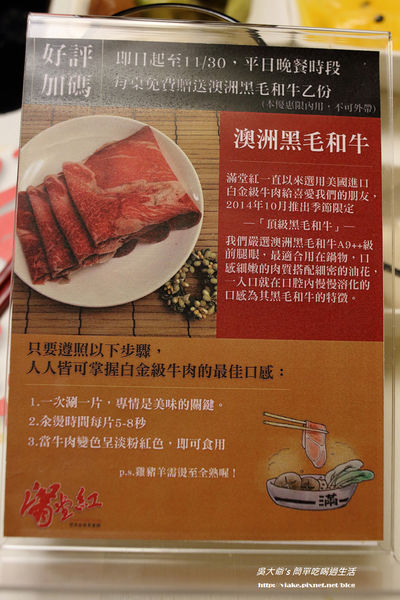 ↑即日起至11/30,平日晚餐每桌多送澳洲黑毛和牛