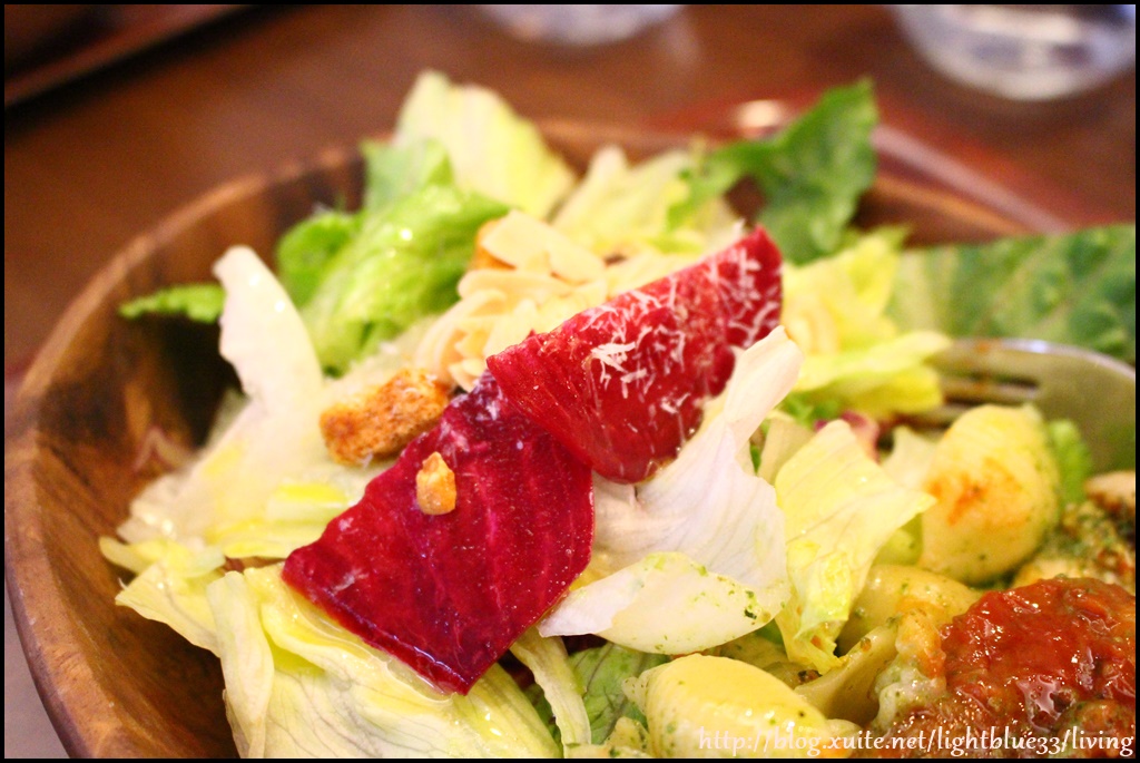 這裡的點餐模式是先找位子,然後到櫃台點餐結帳,再到沙拉區選配菜