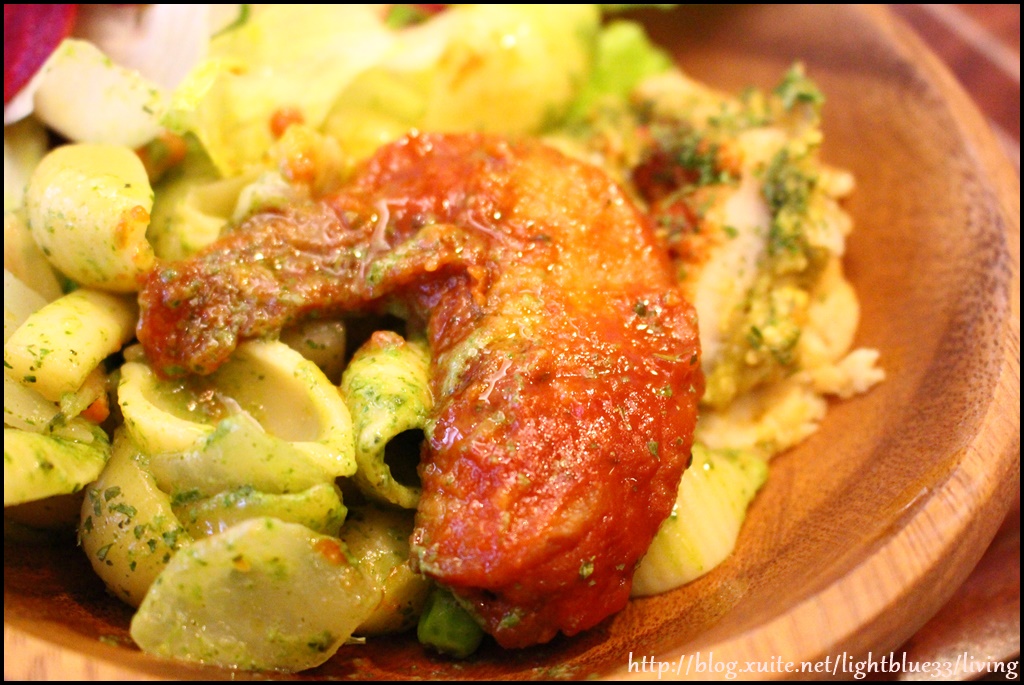 基本上配菜中都會有一樣義大利麵,擔心沒吃澱粉類不會飽的人就可以點這項