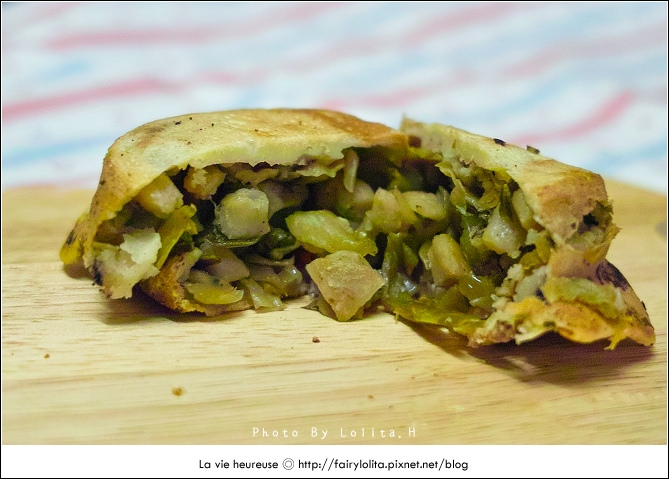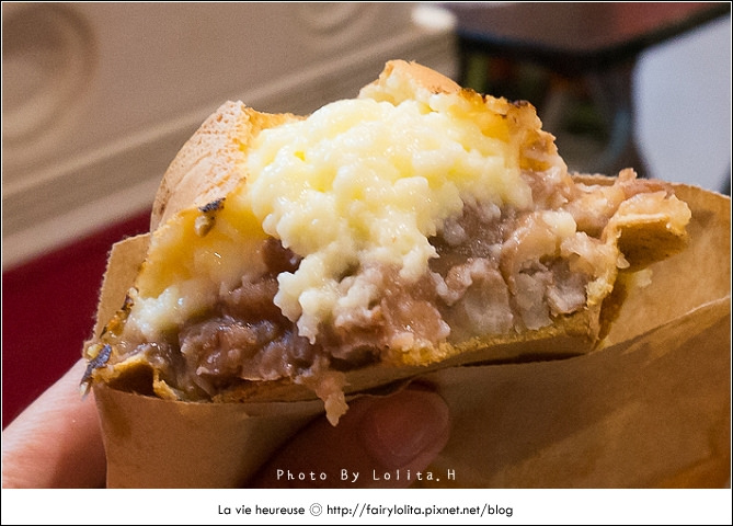 跟三餡一樣,也是可以自由搭配組合的,這個口味我選了大姐推薦的玉米加起士,以餡料來說,紮實度稍嫌薄弱了點,甚至可以說有些乾扁,但整體也還不錯啦!