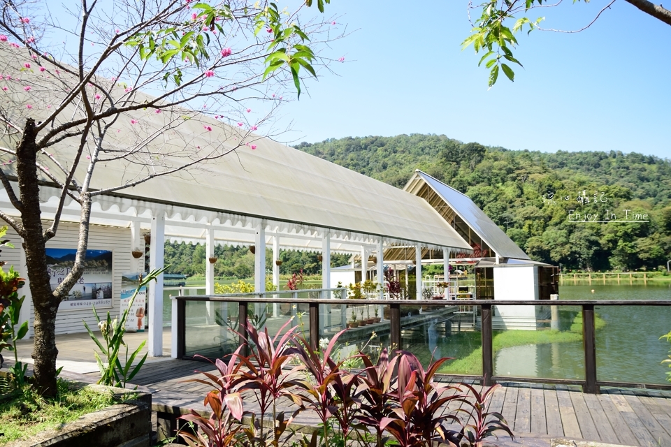 ▼玻璃帷幕打造的水上禮堂,玻璃窗外盡是翠綠樹林和碧綠湖水的景致,跟台南北門的水晶教堂,有不同風味