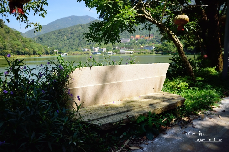 ▼埔里鯉魚潭的環潭步道上,休息的椅子