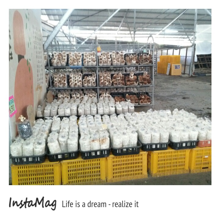 香菇園培育室裡滿滿的菇,籃子裡裝的有的長有的短,一袋一袋的,除了香菇還有柳松菇,鮑魚菇,秀珍菇,杏鮑菇,猴頭菇,木耳及草菇…等,場地好大,看起來好壯觀還可以買太空包的回去自己玩玩看,體驗種香菇的樂趣
