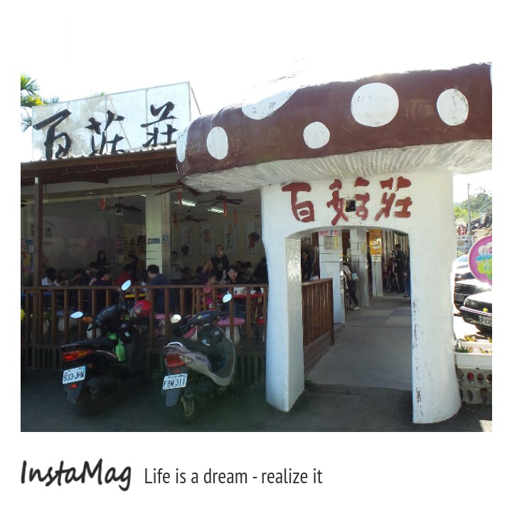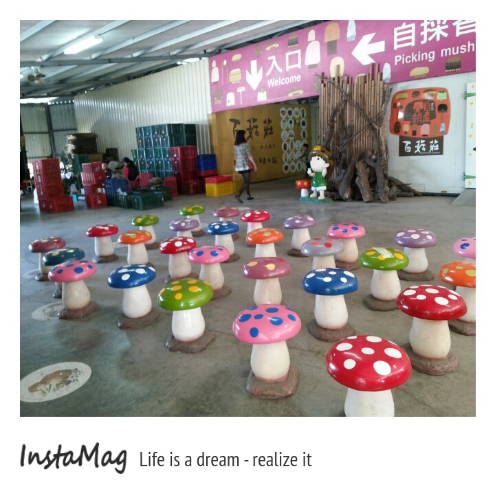 百菇莊是屬開放式讓遊客自由參觀的,也是新社的驛站,入口處的大香菇上面有個隱藏式的超級泡泡機,小朋友們可被這台泡泡機逗樂了