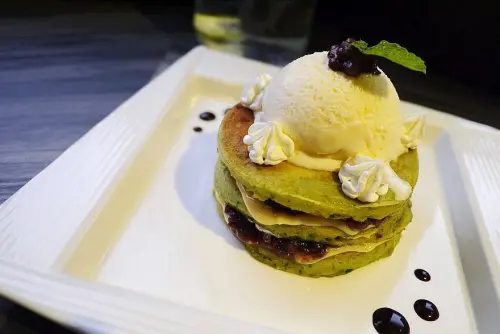 味道香醇濃郁,看的到一點點的香草籽,搭配莓果醬酸酸甜甜的還不錯。