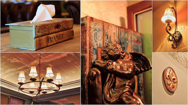 還有漂亮復古經典燈飾,厚重書本的面紙盒,神話的雕刻作品
