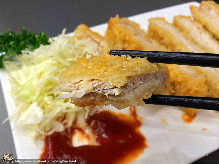 外表炸的很漂亮金黃色,仔細一看其實裡面的豬排有點薄,所以看起來外皮反而比較厚。
