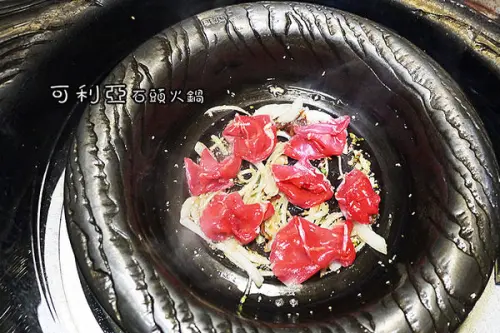 一般石頭火鍋往往只協助爆香,但這邊服務小姐不但連肉料都幫忙炒過,甚至連鍋料都幫你鋪得好好的,服務真的頗為用心。