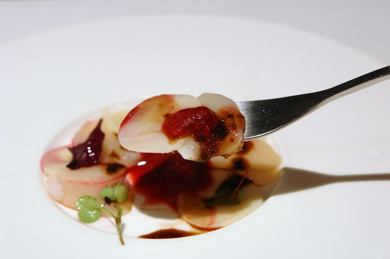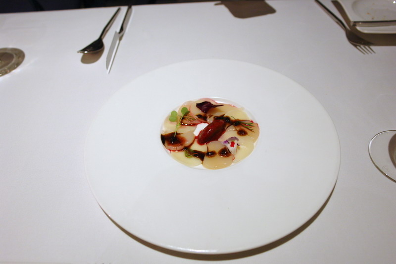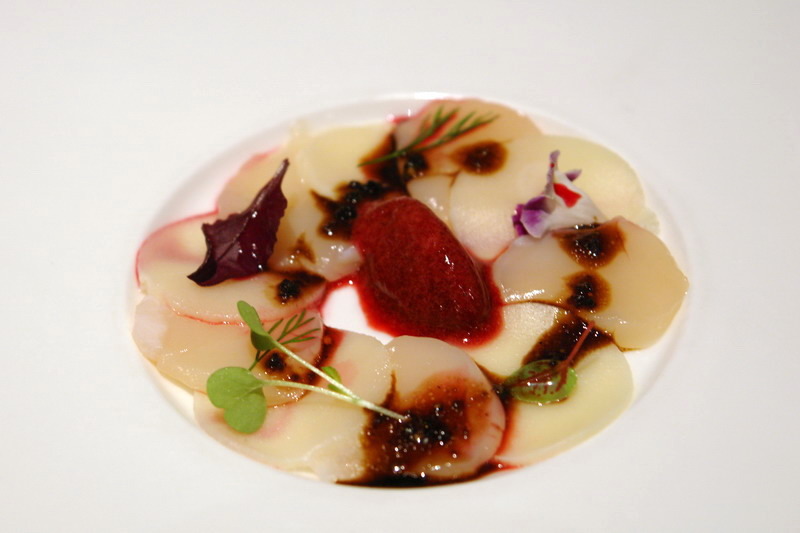 主廚經典開胃小品--北海道生食帝王干貝佐藍莓冰沙