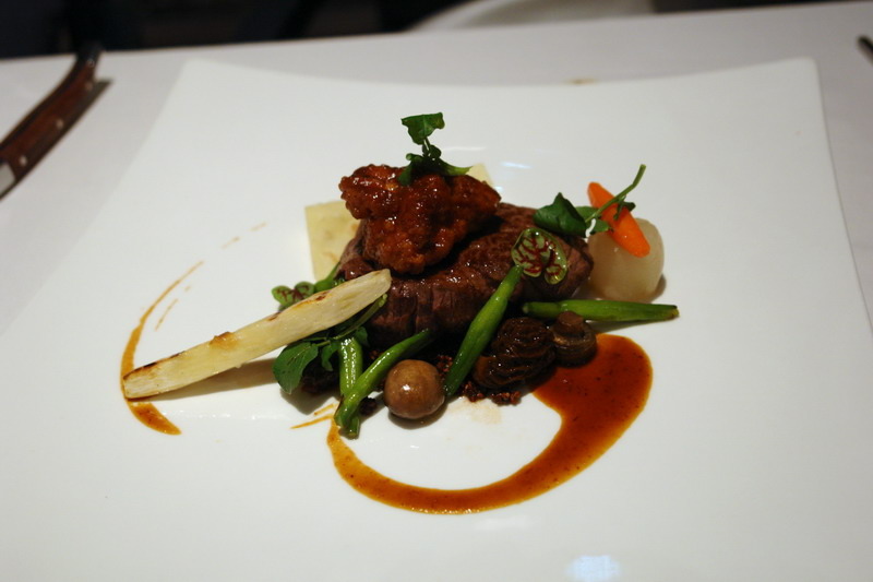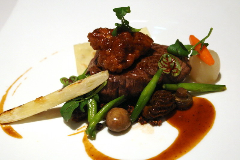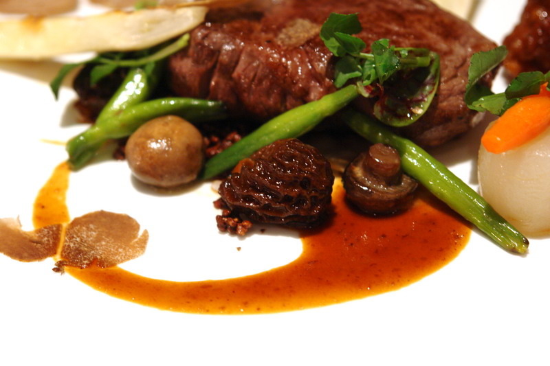 換個角度,這是羊肚菌,菲力搭配的是羊肚菌醬汁。所謂的羊肚菌醬汁,就是用熬了3天的牛骨汁,然後再煮上羊肚菌,濃郁醇香,難怪是靈魂。