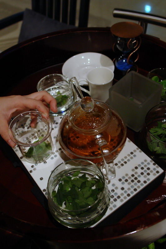 新鮮花草茶,今晚吃了這麼多的豪華大餐,難怪要降血壓、安神…,哈真是用心良苦呀