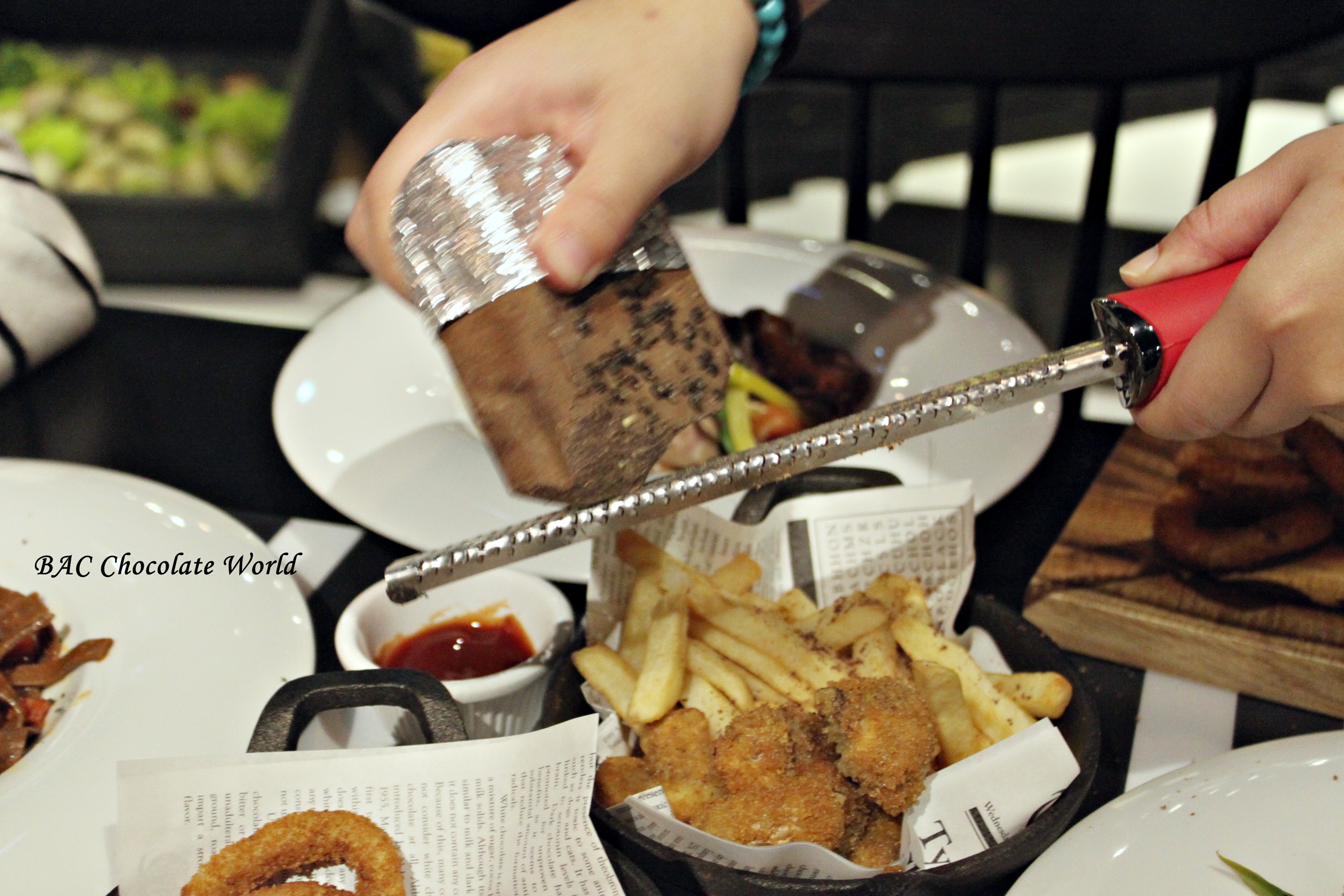 炸物上來後會來桌邊服務就是刨可可粉 好特別唷