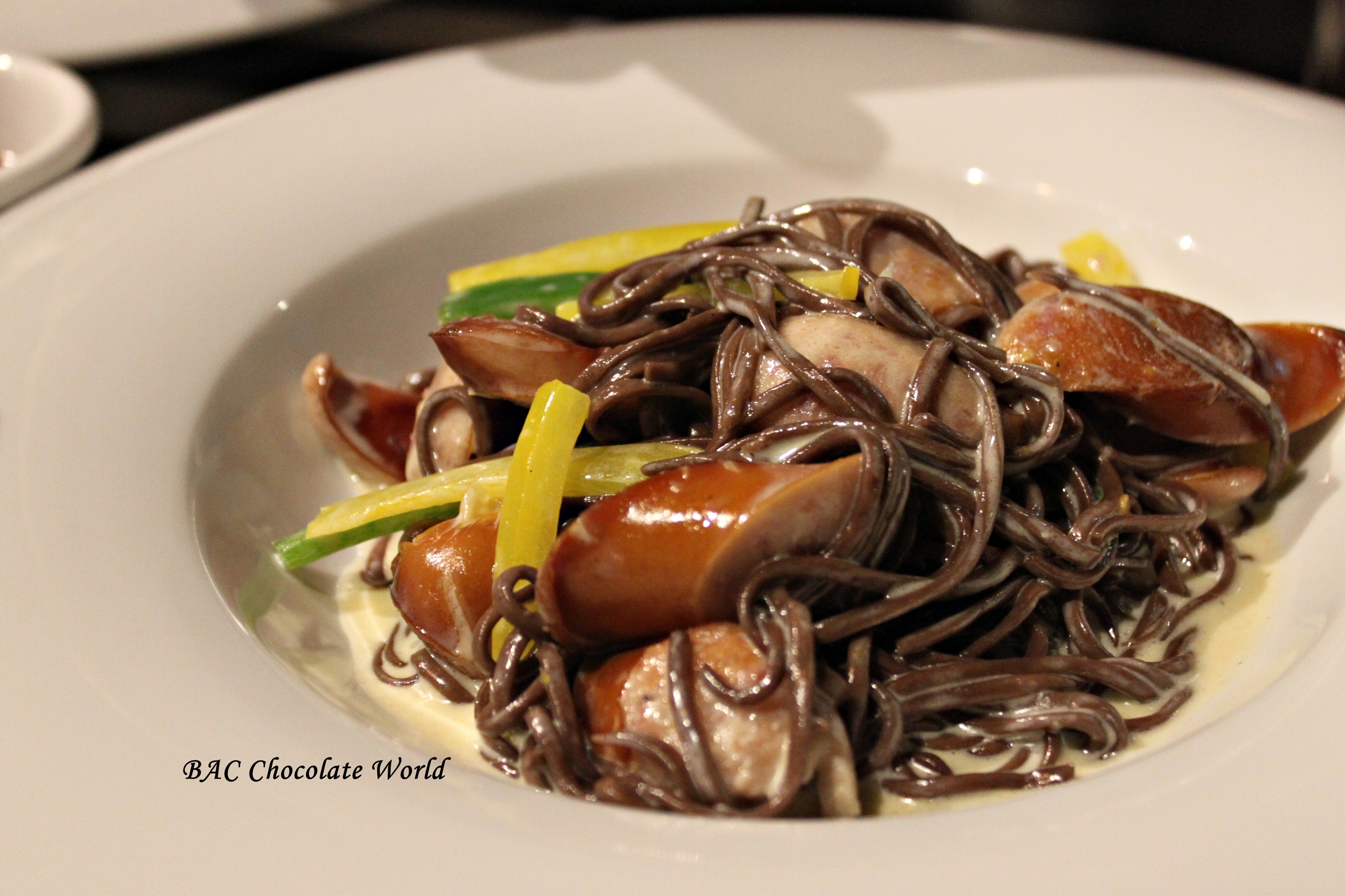 這一道奶油德式香腸 比較重口味一些 我超愛的 香腸又脆又香 配上吸滿奶醬汁的巧克力麵條好搭