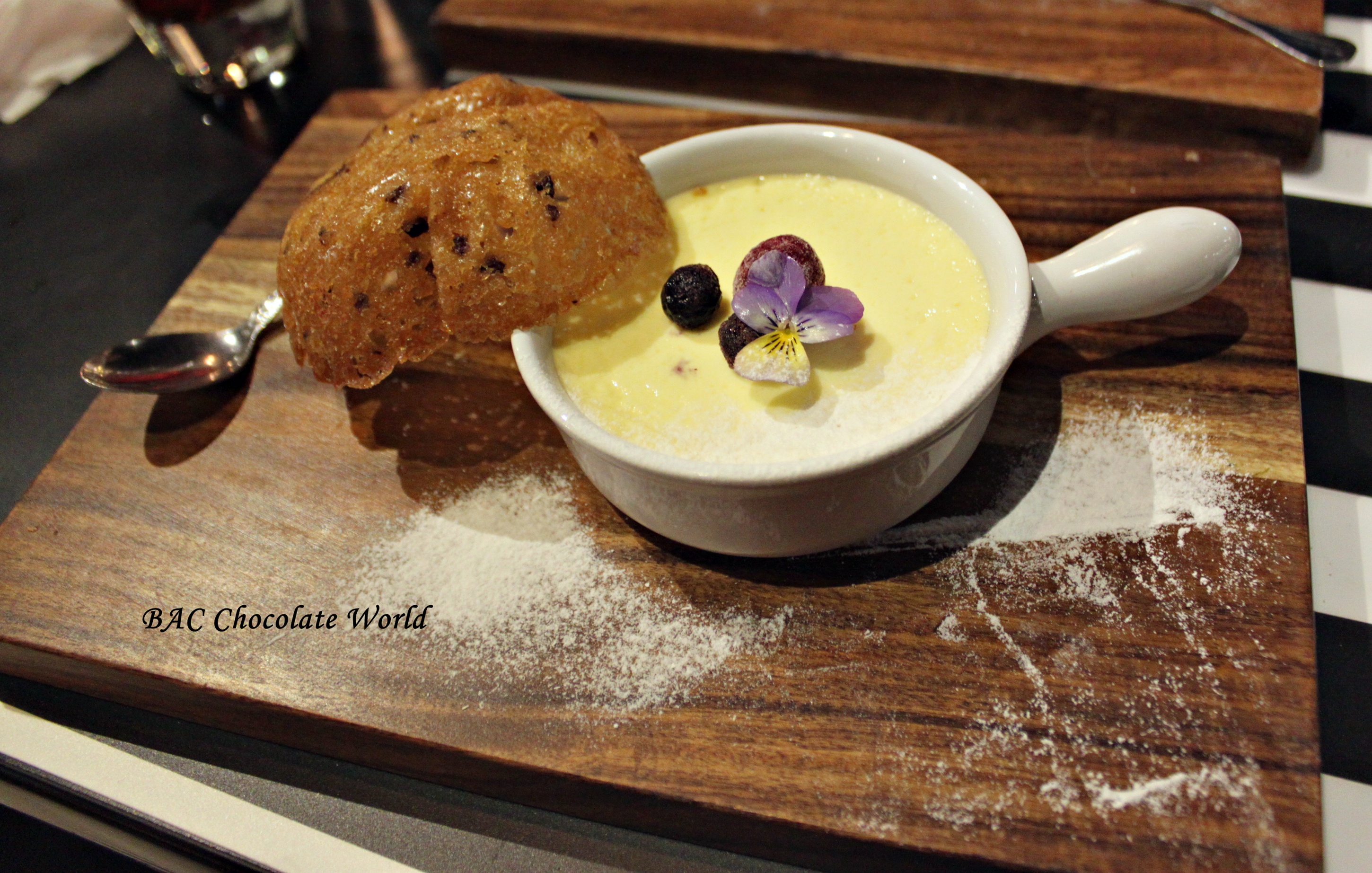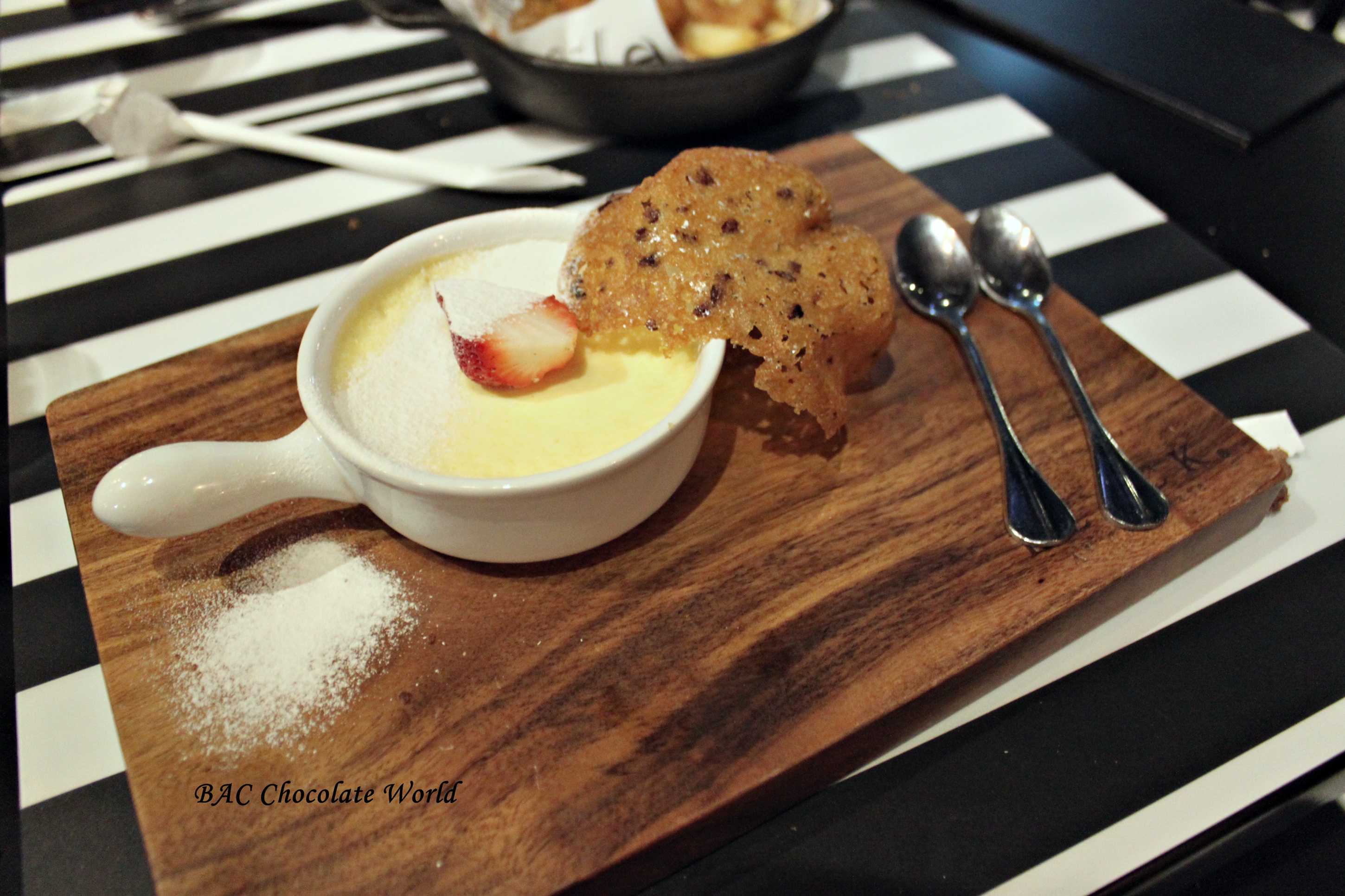 接著上甜點啦 焦糖布蕾 連擺盤都好有意境 重點是它下面那塊木板 整個視覺就好上幾千倍啦