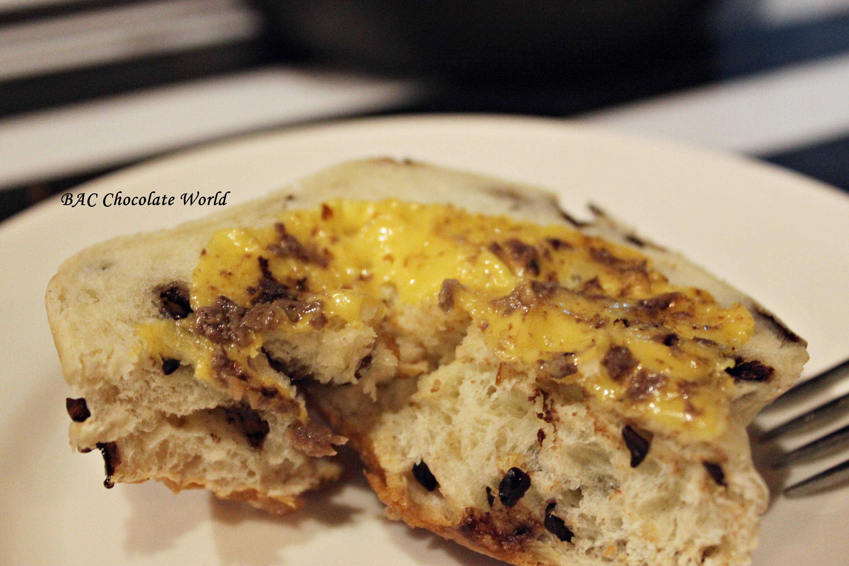 巧克力蓋子解剖面 跟著溶化的起士一起入口 鹹香的味道好特別但不突兀