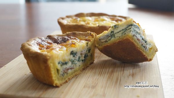 菠菜培根鹹派厚實的內饀,可以感受新鮮雞蛋及蘑菇香氣