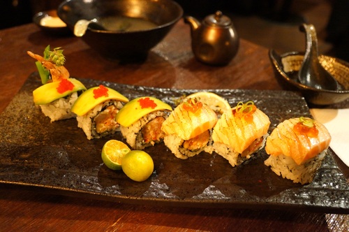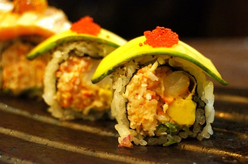 上面是酪梨片,在國外大家習慣壽司裡面加酪梨,