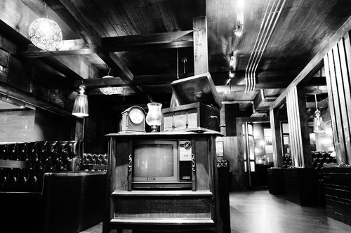 巧妙的結合一些古早電視.點唱機.時鐘..等,