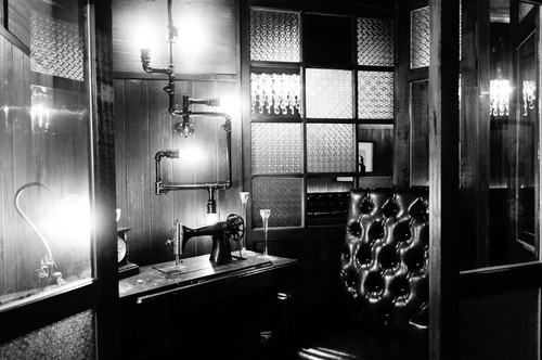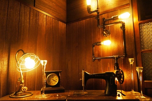 還有一個小房間,有復古的縫紉機.門窗.皮椅,