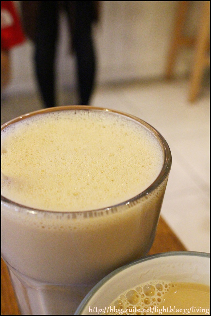 點了冰的焦糖豆漿,很好奇喝了一口,大概因為豆漿本身就很濃郁,