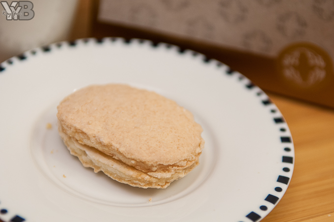 每一個達克瓦茲都有金光閃閃的固定夾層,保護著酥餅的完整外形~