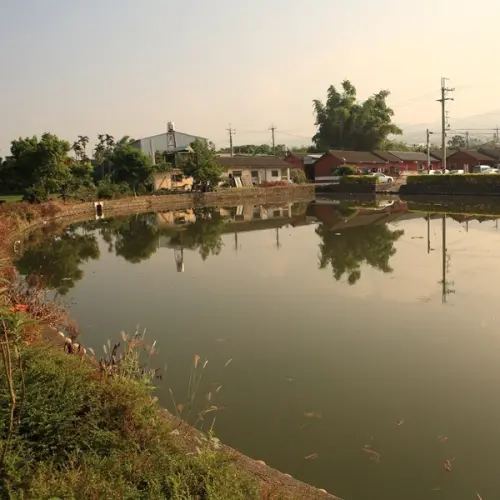 劉氏古厝前有座形似彎月般水池而得「月眉池」此名~
