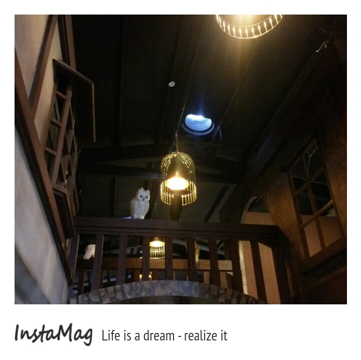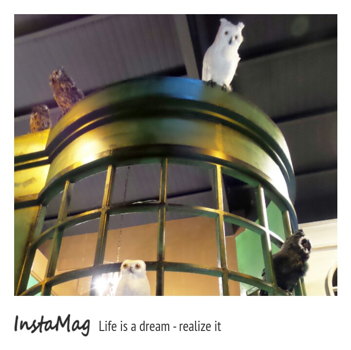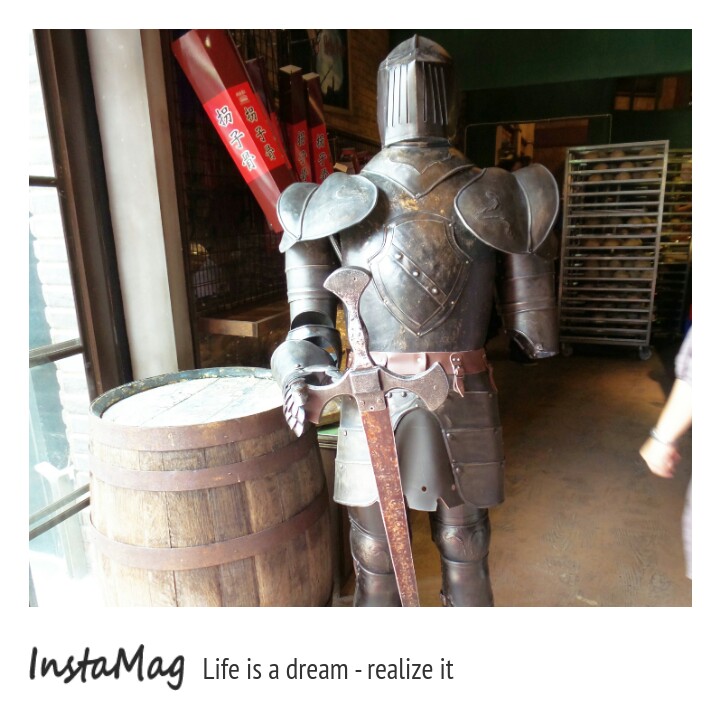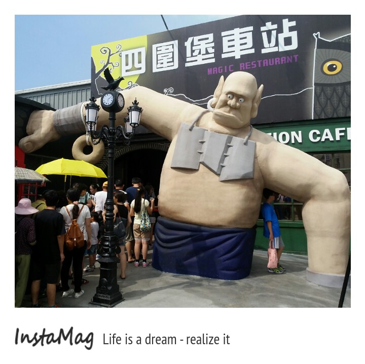 因為人多,排隊很熱,入口旁有提供涼飲請遊客耐心等候,涼飲真不是蓋的,很冰很冰,一杯喝完再添一杯,經過巨人的手臂入園後,2隻古盔甲武士來給大家迎賓,裡面充滿神秘的氣息,鳥籠為天花板燈飾,抬頭看不管走到哪個位置都有貓頭鷹從屋簷給你的頭頂注視禮,若有看過哈利波特,那麼宜蘭礁溪的的四圍堡車站,他就像哈利波特的霍格華茲魔法學院,進場後臨場感一點都不會覺得陌生