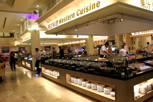 餐廳總共有海鮮區、熟食區、義大利麵區、港式料理區、湯品區、沙拉吧區、披薩區