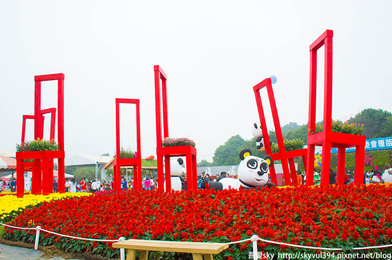 還有紅色的椅子跟可愛的熊貓,近看才發現原來是椅子。