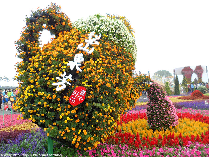 今年的三大主題花毯區-「台中國家歌劇院」、「幸福香菇屋」、「白海豚生態館」,聚集了各式各樣繽紛美麗的花。