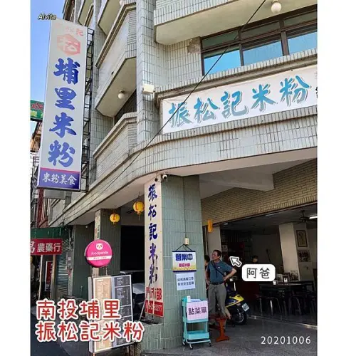 結束早上【造紙龍手創館】行程之後,接著去2010年去過的【振松記米粉】填飽肚子,【振松記米粉】就位於南投埔里酒廠對面,許多美食節目都有來採訪過,店內除販售米粉外,也有販售茶飲、冰棒、剉冰 午餐時間依舊是絡繹不絕的客人,因為車輛就停在門口,迅速選定騎樓下的座位後填單點餐,自行填單後先至櫃臺結帳,將電腦跑出的點餐單放在桌上,服務人員就會將餐點送到桌上