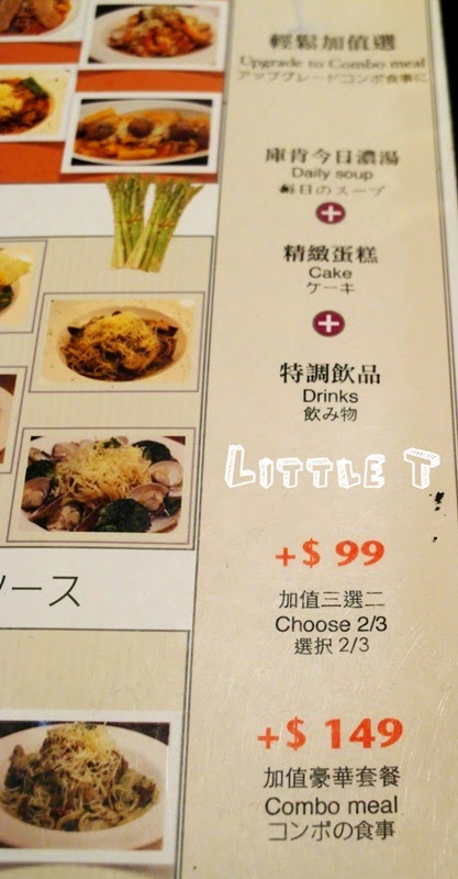 單點+$99可以今日濃湯、蛋糕、飲品三選二,+149則是三種都有