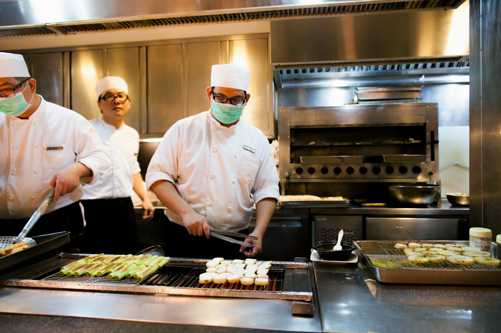 再來我們看看認真的師傅為我們烹調鐵板豆腐(左)和蘿蔔糕(右)~