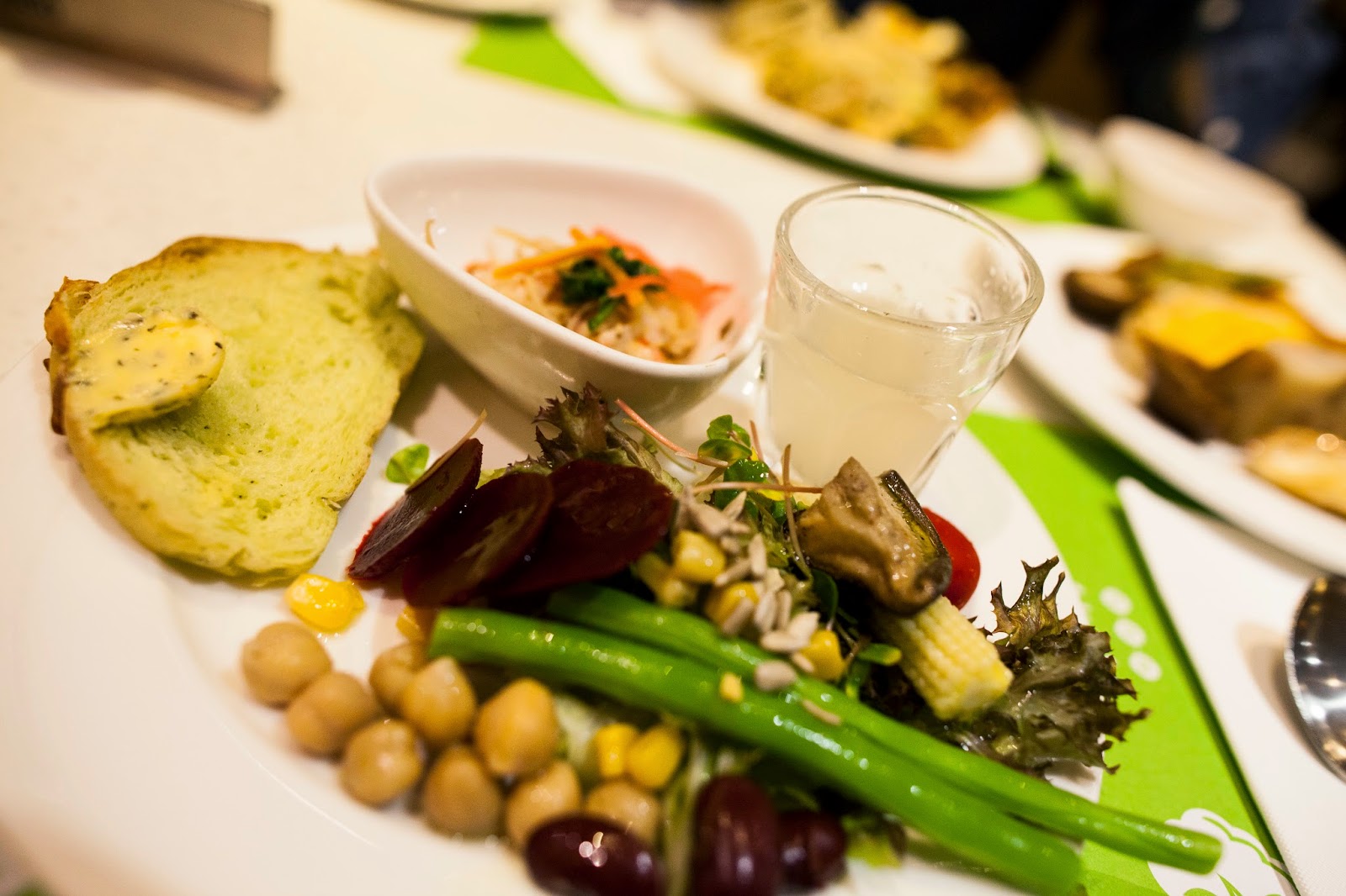 前面會是沙拉,我選擇了鷹嘴豆,甜菜根,長豆,蘑菇,綠豆芽菜,撒上葵花籽,再淋上松露風味的橄欖油,簡直是...~~~