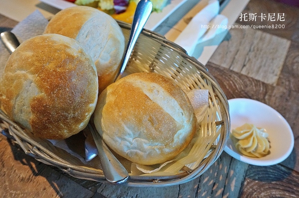 Queenie對於托斯卡尼尼的麵包口感相當滿意,搭配店家特製的鮪魚奶油抹醬,