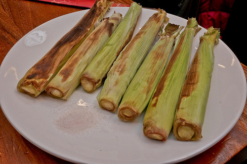 帶殼玉米筍已經是近期串燒店必備的烤物了, 沾一點鹽就是特別好吃